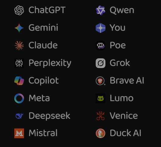 | ✴ ChatGPT ✴ Gemini ✴ Claude ✴ Meta.ai ✴ Grok ✴ Qwen |