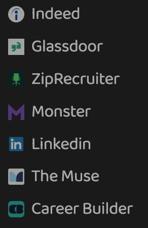 | ✴ Indeed ✴ Glassdoor ✴ ZipRecruiter ✴ Monster ✴ The Muse |