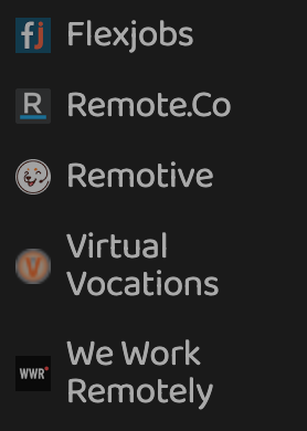 ✴ We Work Remotely ✴ Virtual Vocations ✴ Remote.co ✴ FlexJobs |