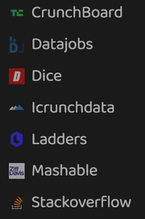 | ✴ Dice ✴ Mashable ✴ Tech Fetch ✴ Tech Careers ✴ Stack Overflow ✴ Crunchboard ✴ Ladders |